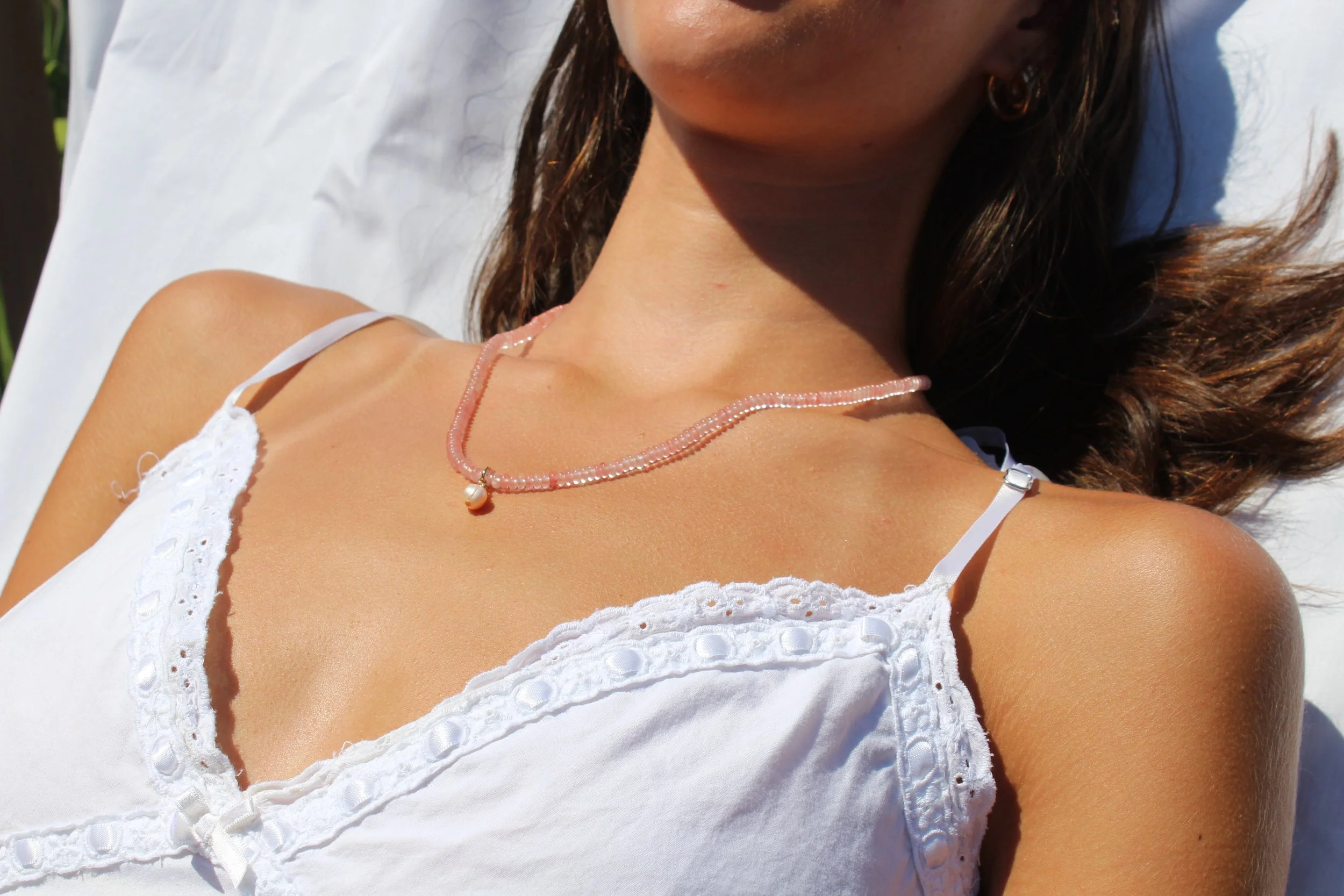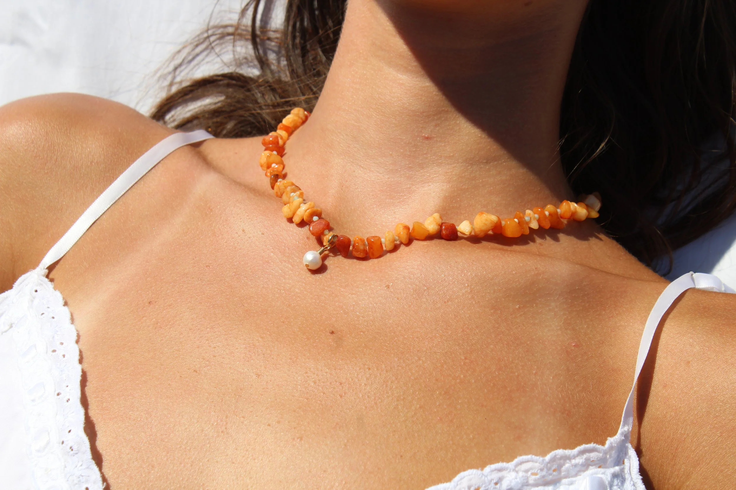Categories: All Sunsetting On Summer Edit Necklaces Chokers Princess' Matinees Bracelets Purses Upcycled & Vintage Tangerine Quartz & Pearl Bracelet $30.00 Limited Availability Ray Necklace $50.00 Thumbalina $40.00 Limited Availability Tangerine Spritely Necklace $40.00 Limited Availability Cannes Choker $75.00 Limited Availability St. Tropez Choker $45.00 Limited Availability Clementine Necklace $50.00 Rosetta Necklace $45.00 Sorbet Choker $40.00